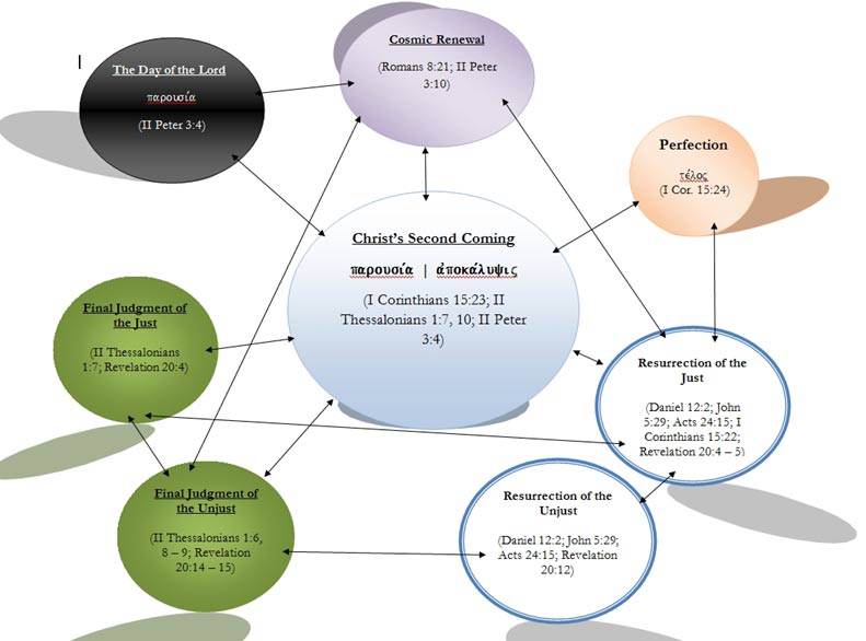 But I’m being picky. The major issue here is that this diagram in no way ‘proves’ that these events happened at the same time. In fact, reason suggests that they couldn’t. The resurrections must have happened before the judgements, surely? What is needed is the explanation of why these verses show the concurrence. In addition, isn’t there a major event missing? What happened to the Rapture (1 Thess 4:13-18, 1 Cor 15:51-55)?