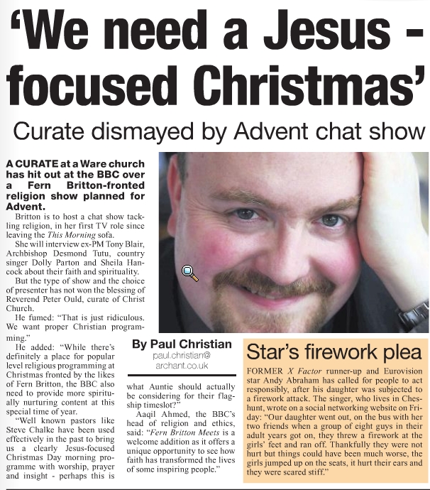 Hmm, surely ++Desmond, Tony and St.Dolly are all pretty Christian? And TV ‘celebrities’ will surely be more likely to attract seekers to watch the programme than pastors?
