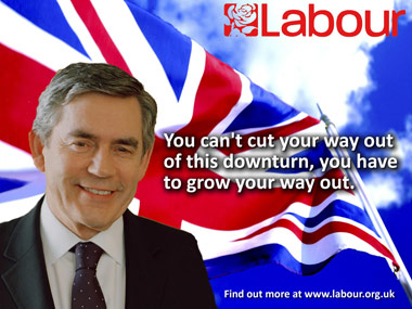 1. An upside-down flag is a distress signal when no other means are available. Maybe the poster designer is locked inside Labour HQ and trying to escape?! Wouldn't it have been easier for Labour to use a white flag? I can't believe ALL 2,351 French white flag factories are on strike. Mind you, their lighting man's good. Gordon looks 20 years younger – maybe HE still thinks it's the 1980's. And why is he smiling? Is it because the Pope has just overtaked him as the World's Least Popular Leader? – After all, Gordon's only b*ggered a G8 economy…
