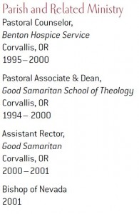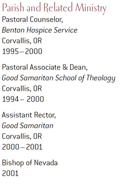She further clarified that she ‘spent a year as Dean of the School of Theology and Ministry for the Diocese of Oregon (1990-1991)’.