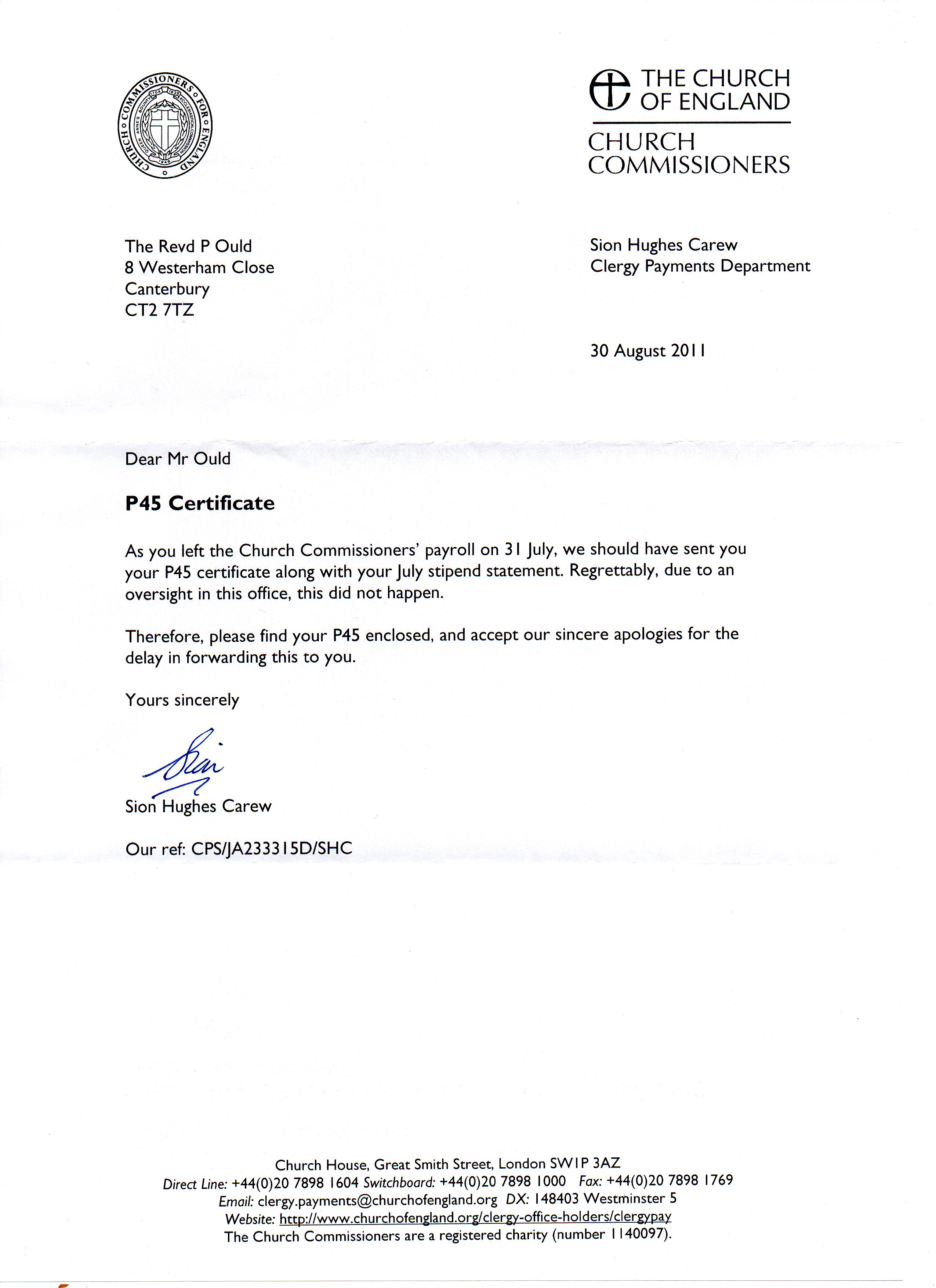 Now, 34 days and 18 hours after taking me off the payroll, this finally comes through the door.