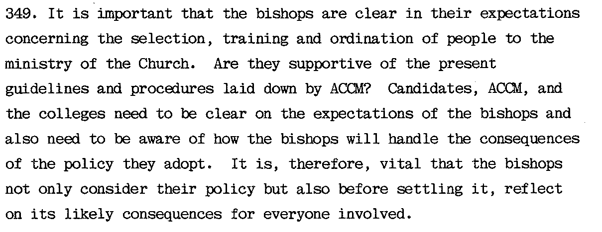 One further immediate thought. There has been much comment elsewhere about how this report was essentially junked and then Issues in Human Sexuality created. However, it seems clear to me that whilst the House of Bishops did choose not to publish this paper, it did respond to it. Section 349 reads,