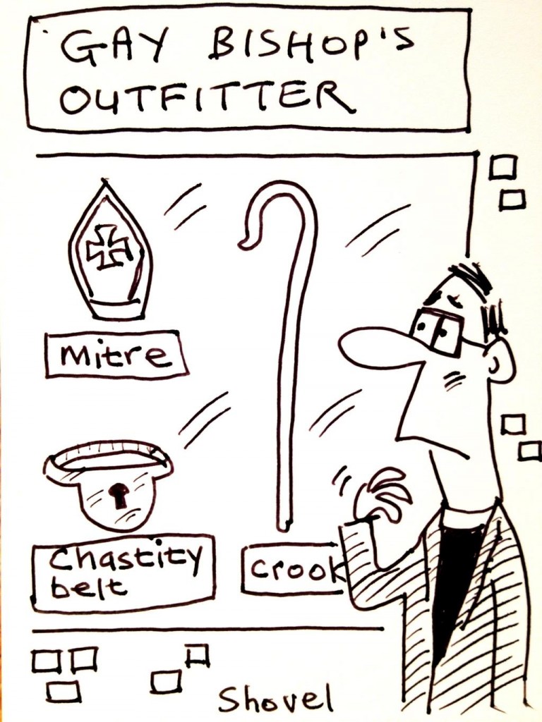Gay Bishops? Peter Ould Posted on January 4, 2013 Posted in Church of England, Gay Bishops, Lighter Things No Comments Tagged with Creativity Works, Gay Bishops From the wonderful @martinshovel. You can find more of his great work at Creativity Works. Related