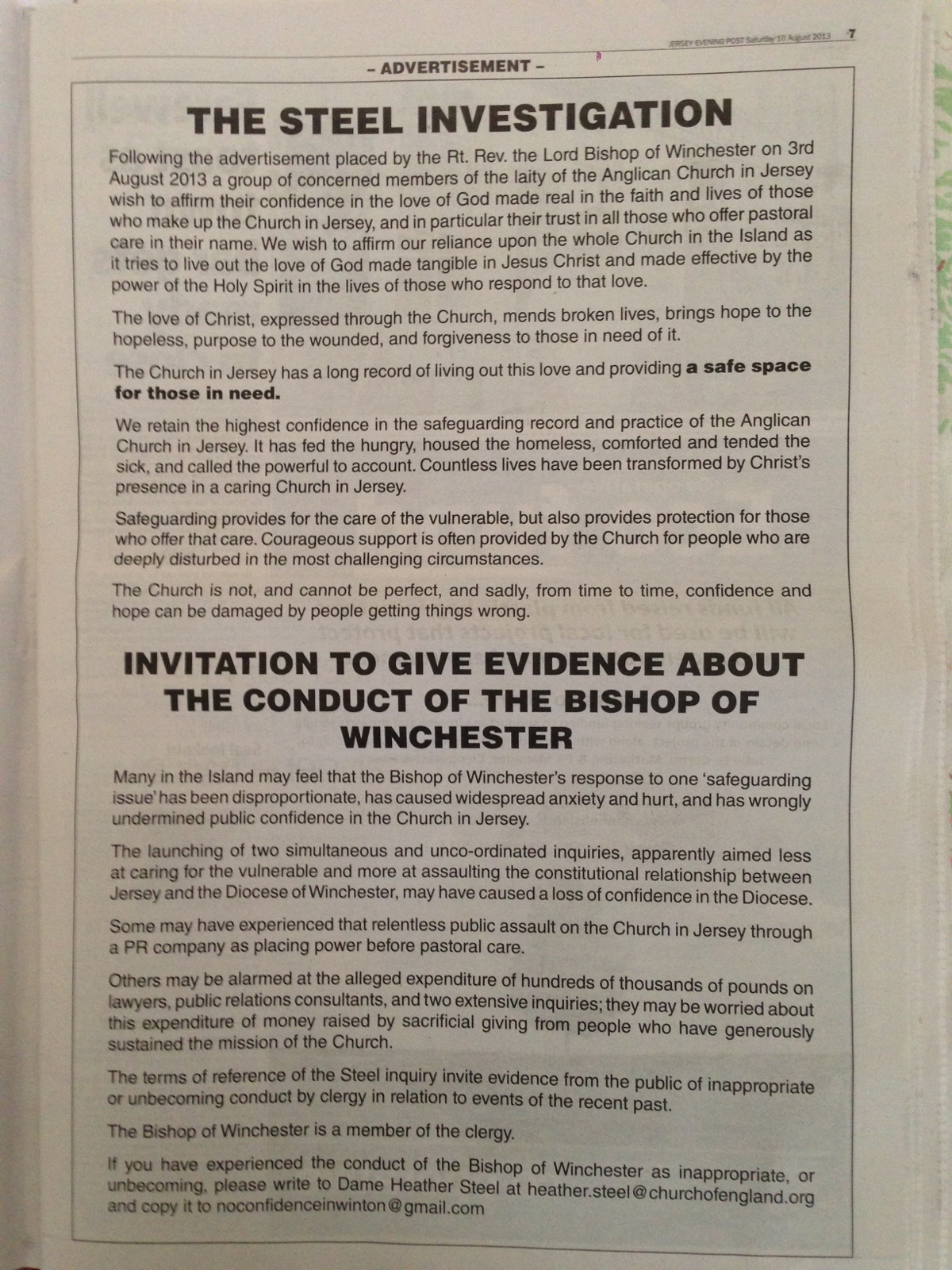 A new advert has been placed in the Jersey Evening Post (this morning – ironically). Click on the picture for a larger version.