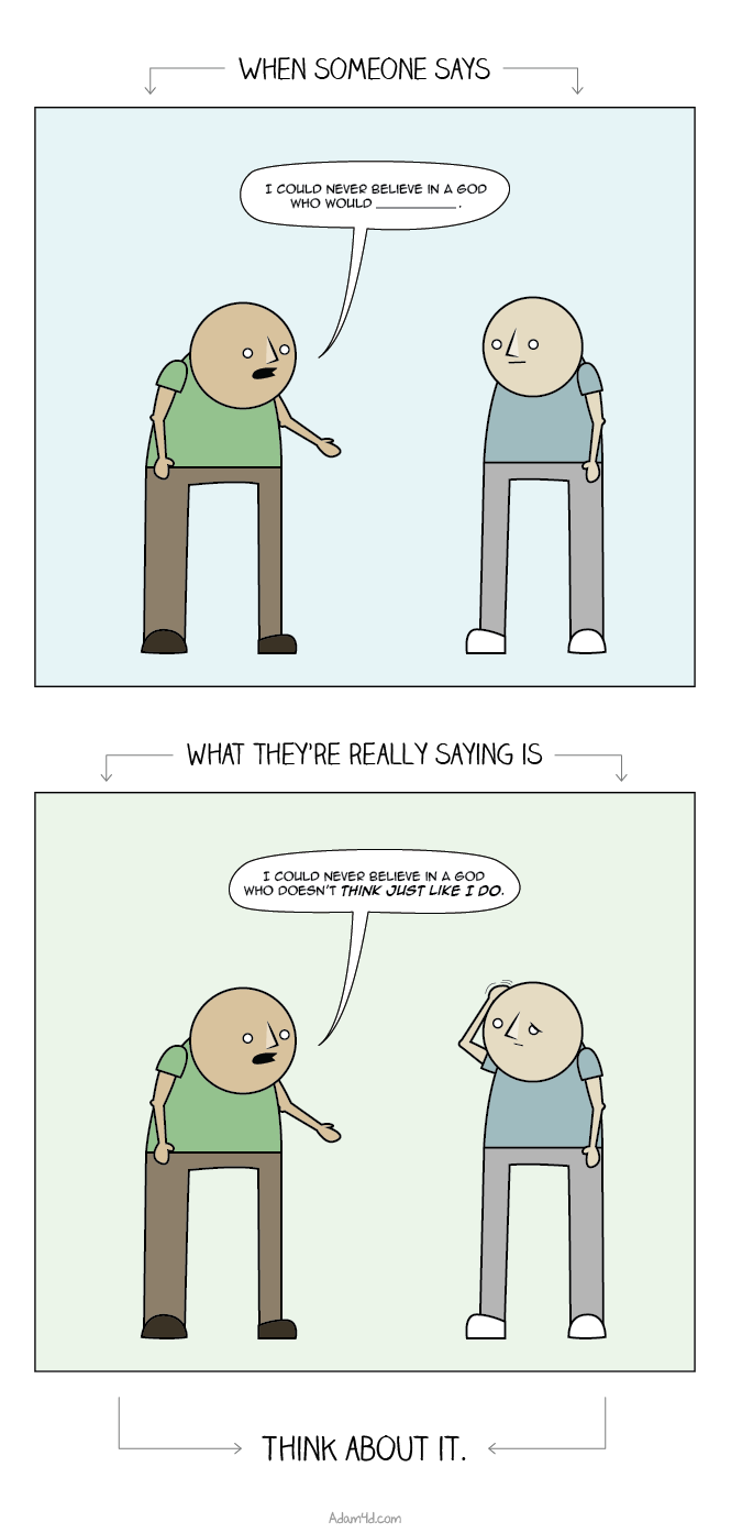 Believing? Peter Ould Posted on August 21, 2013 Posted in Lighter Things, Theology 1 Comment Tagged with God, Great Stuff, Nbsp There’s lots more great stuff over at Adam4d. Â Our God is in the heavens. He does whatsoever he pleases. Related