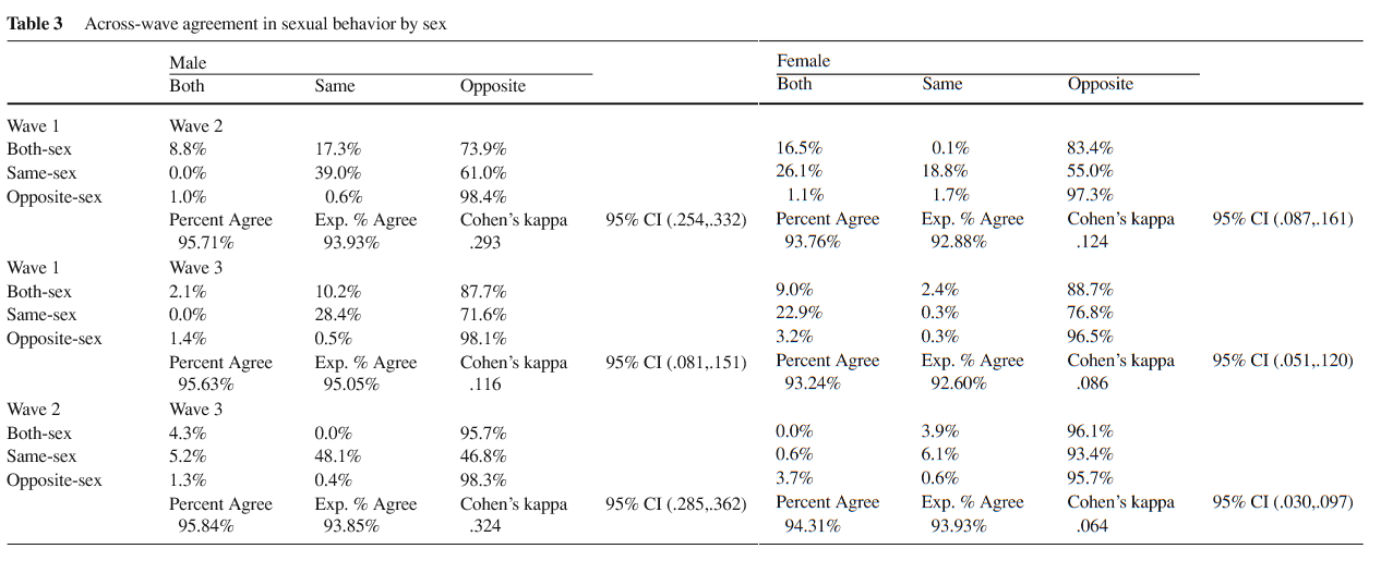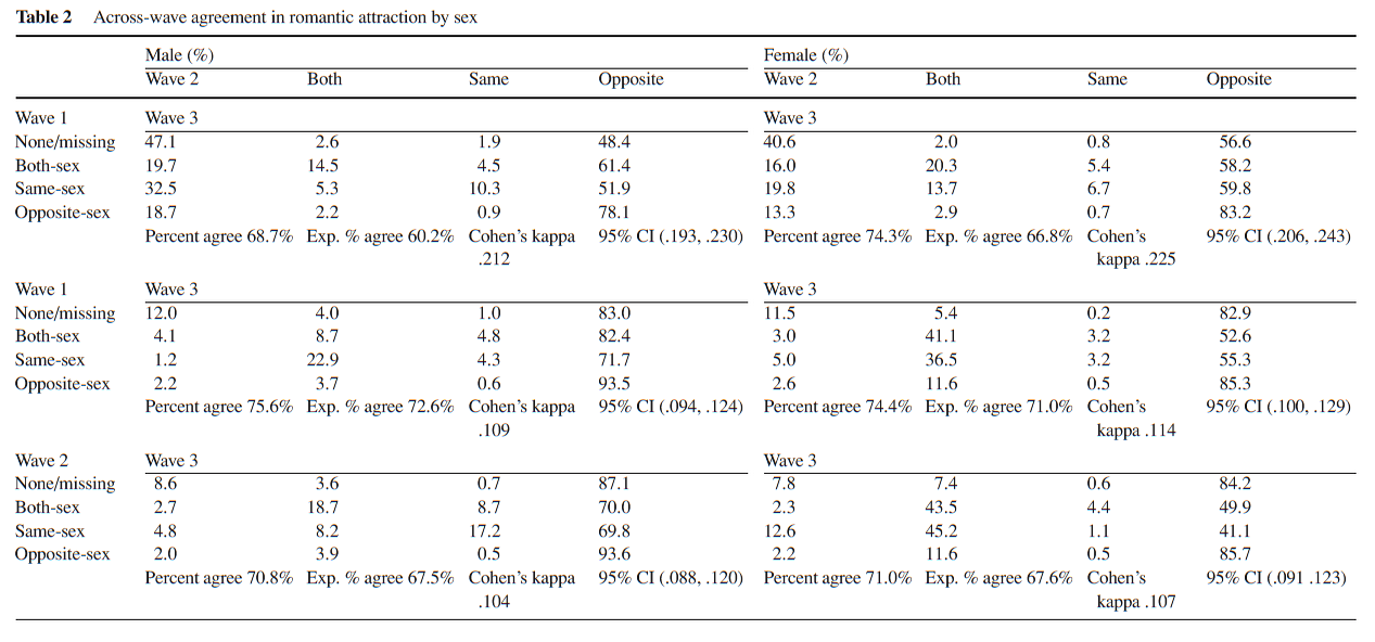 Savin-Williams, R.C. and Ream, G.L. (2007)  “Prevalence and Stability of Sexual Orientation Components During Adolescence and Young Adulthood.”  Archives of Sexual Behavior  36, 385-394. is not currently publicly available free to view, so this post displays the key parts of the research with the statistical model of sexuality change. A link to this post will go on my Online Directory for Sexual Orientation Change Research.