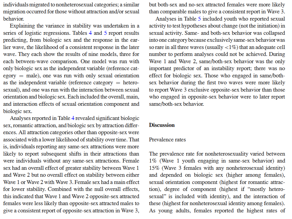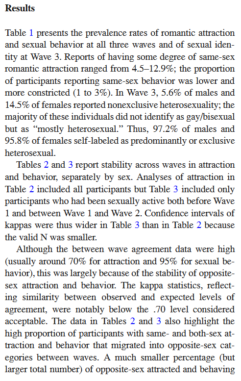 I don’t read them all, because I have neither the patience or the inclination to make sense of a load of figures (I admit to being a mathematical nitwit) and funnily enough, the initial response I gave on this particular blog was for a different study to the Savin-Williams one – it was actually entitled something else, which I found in the daily CEN. Perhaps Peter can throw light on this. If you had seen it, you would probably have drifted off to sleep before getting to the end of the first paragraph, unless you are the geeky type who gets excited at the sight of a lot of mathematical symbols.
